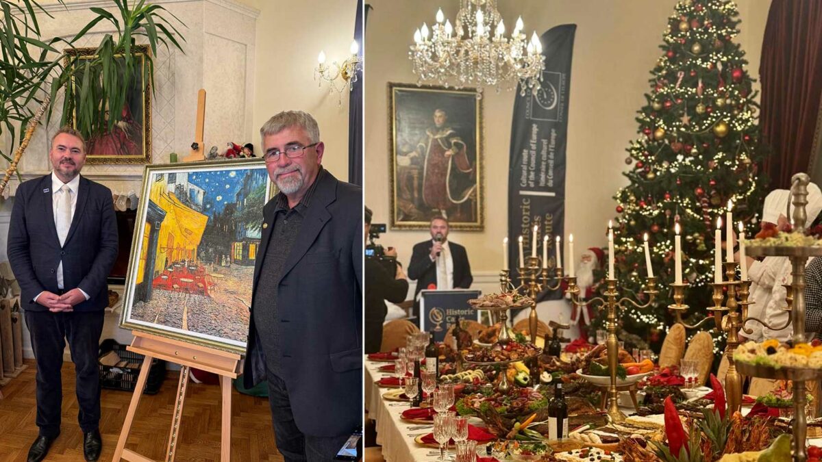 President Arnold G. Klingeis welcomed the artist Mircea Codrea to present the famous picture of Van Gogh - Cafe Terrace by Night
